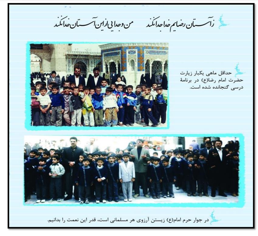 با توجه به موقعیت مکانی ویژه و استثنایی مدارس نوین در نزدیکی به حرم مقدس رضوی، یکی از برنامه های مستمر پرورشی مجتمع، تشرف گروهی و منظم دانش آموزان به حرم و بهره گیری از فضای معنوی حریم رضوی است. تشرف به حرم عالم آل محمد(ص) بصورت ماهانه برای هر کلاس برنامه ریزی میگردد.