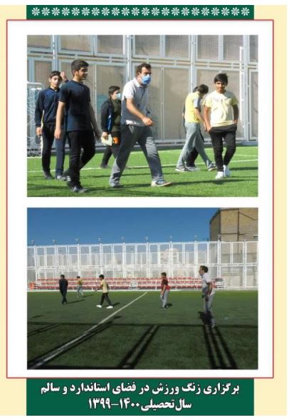 2- برگزاری زنگ ورزش در فضای استاندارد و سالم ورزشی جهت تقویت نیروی بدنی و هوش حرکتی و شناسایی استعدادهای ذاتی ورزشی دانش آموزان